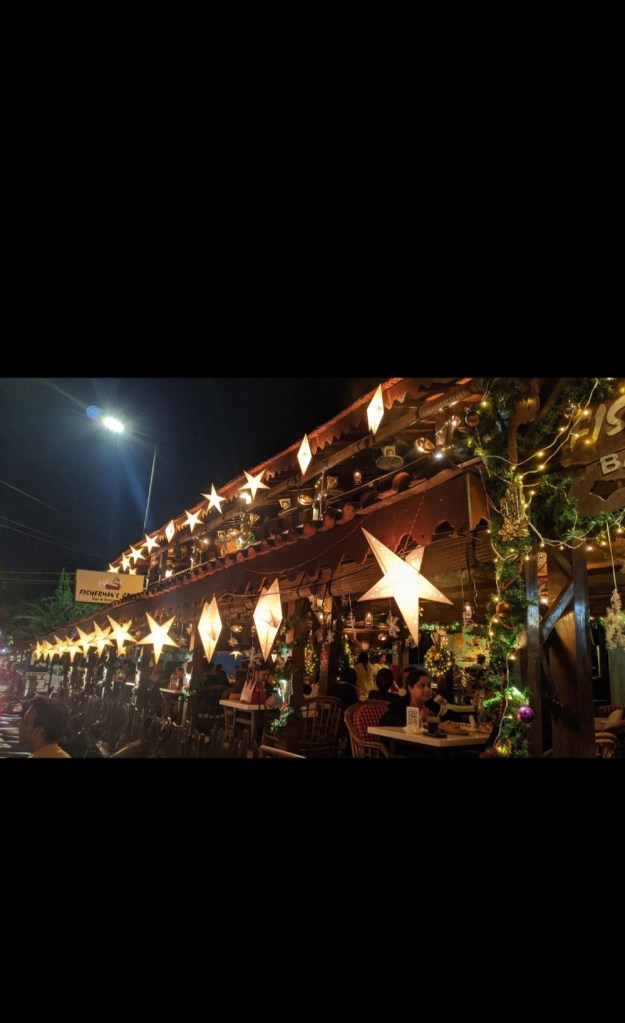They don’t take reservations so go early and sit late. Have a drink.. enjoy the live music and the traffic on the road side