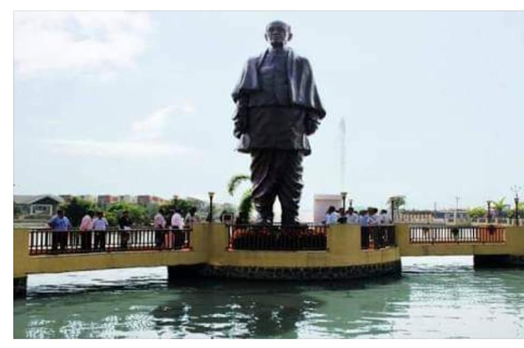 in the center of lake a small statue of saradar vallabh Bhai Patel